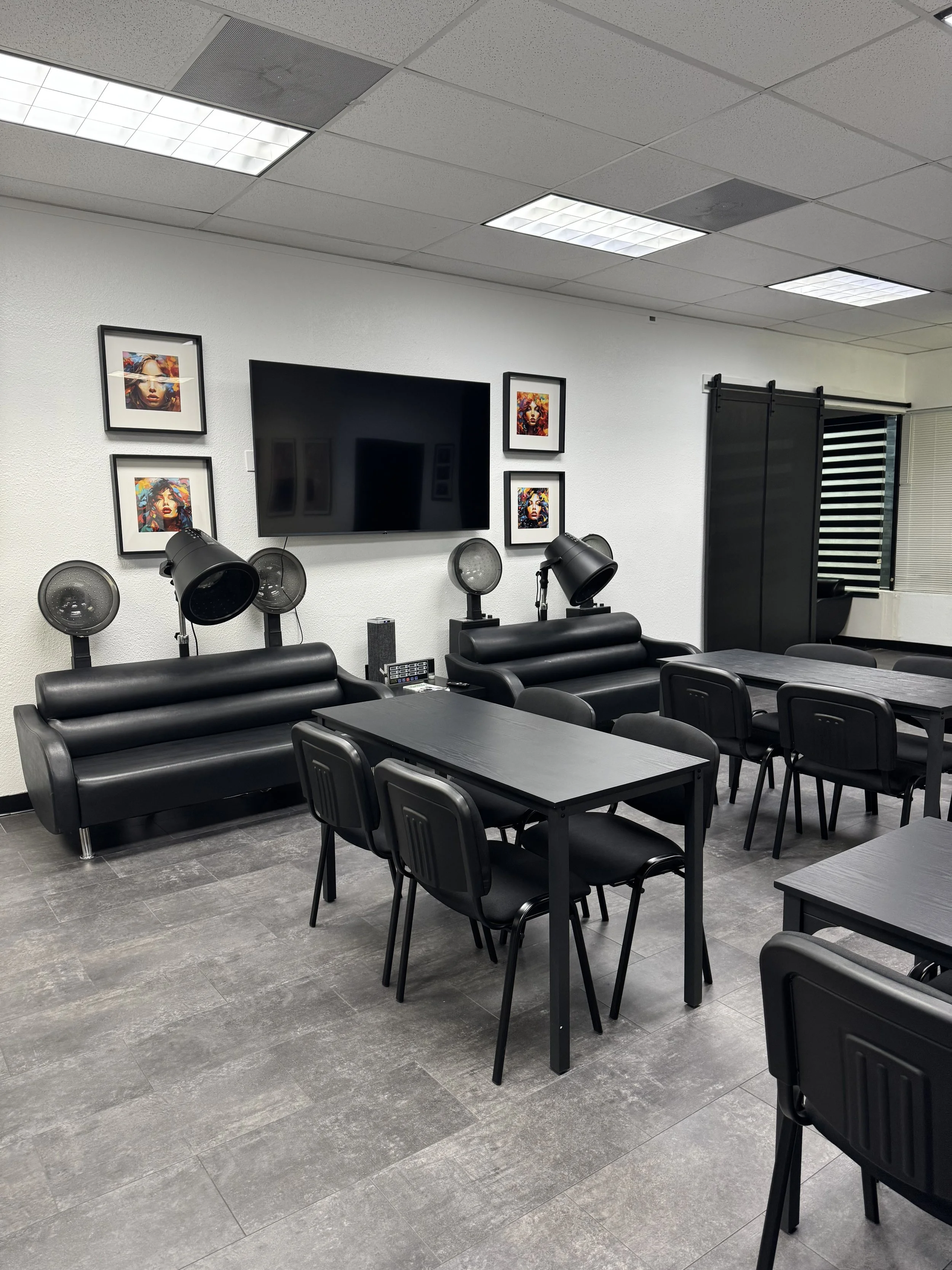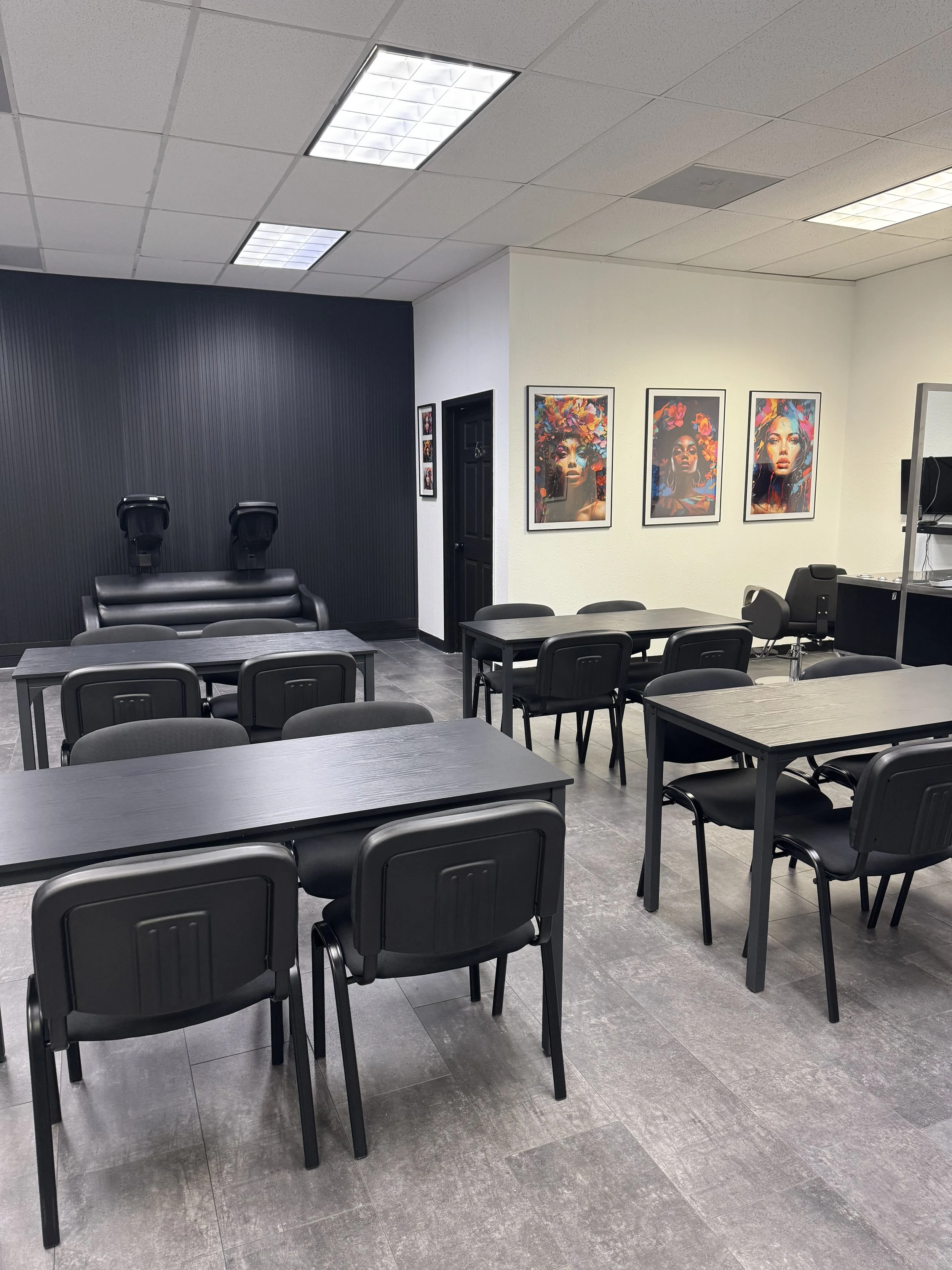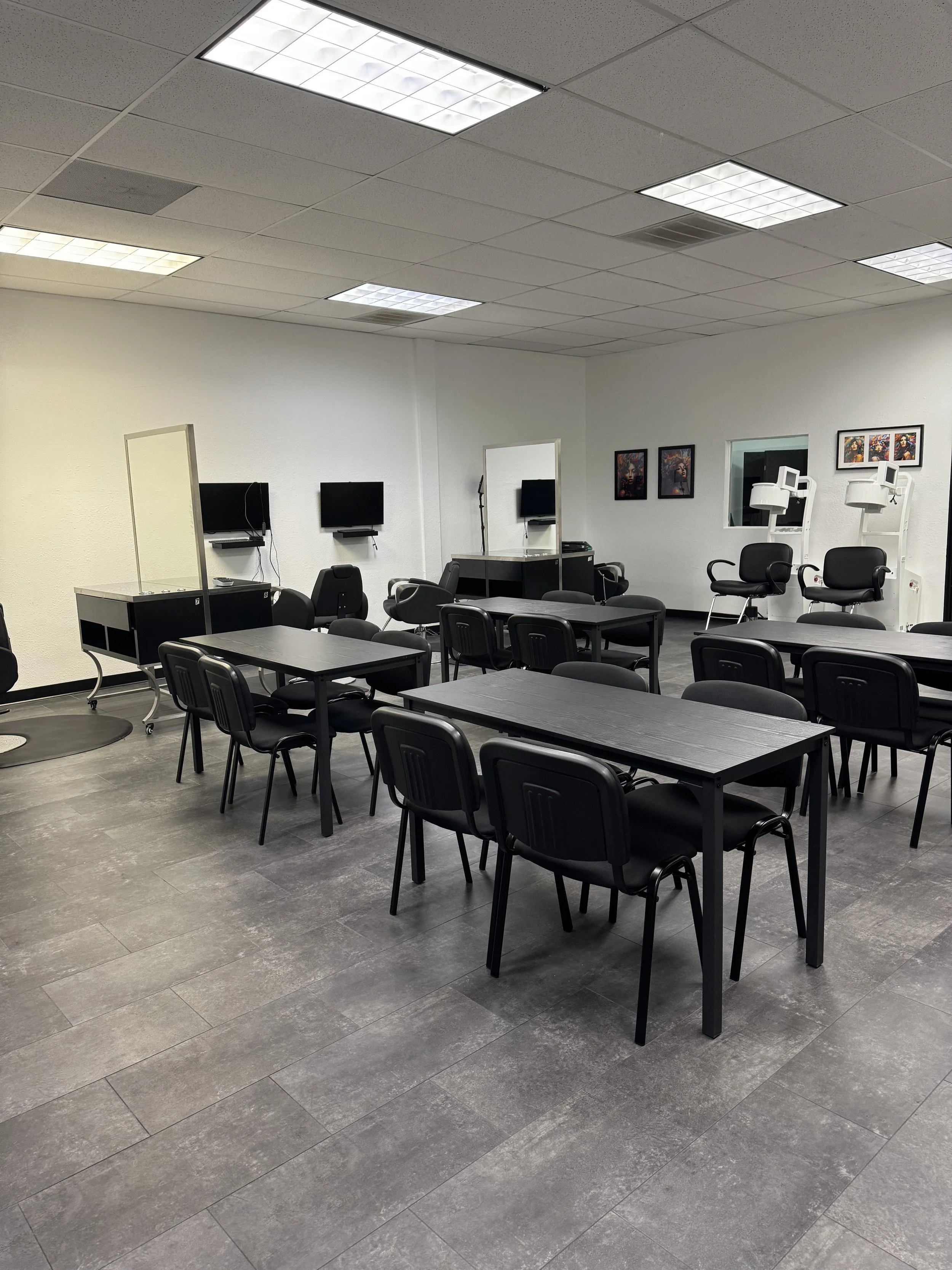 Our academy was designed specifically for beauty education, offering a hybrid training environment that combines classroom instruction with practical demonstration areas. Educators have access to a spacious 900-square-foot training facility equipped to support both lecture-style teaching and hands-on technical training.